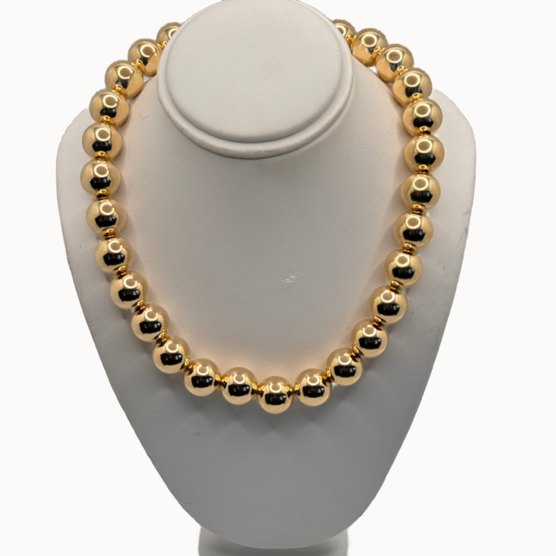 Introducing the Barbara Necklace, a must-have for any fashion-forward individual! This statement necklace boasts 12mm gold filled beads that add a touch of luxury and sophistication to any outfit. Stay on trend and show off your unique style with this eye-catching newbie! Also available for special order in a bracelet.