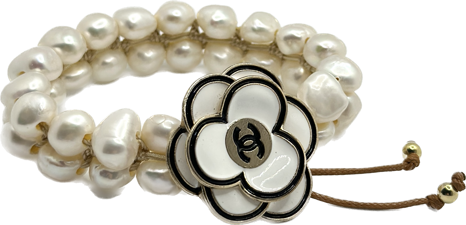 Berkshire personifies style and grace. Pearls are woven and finished with gold beads to create this beautifully elegant piece. The enamel button, available in both black and white, remains simple while also making a statement at the same time.
