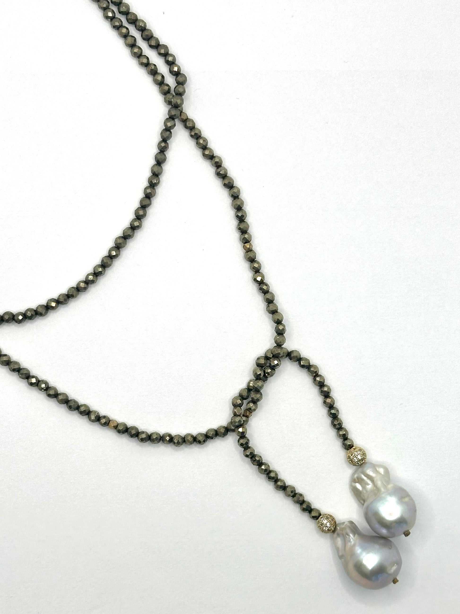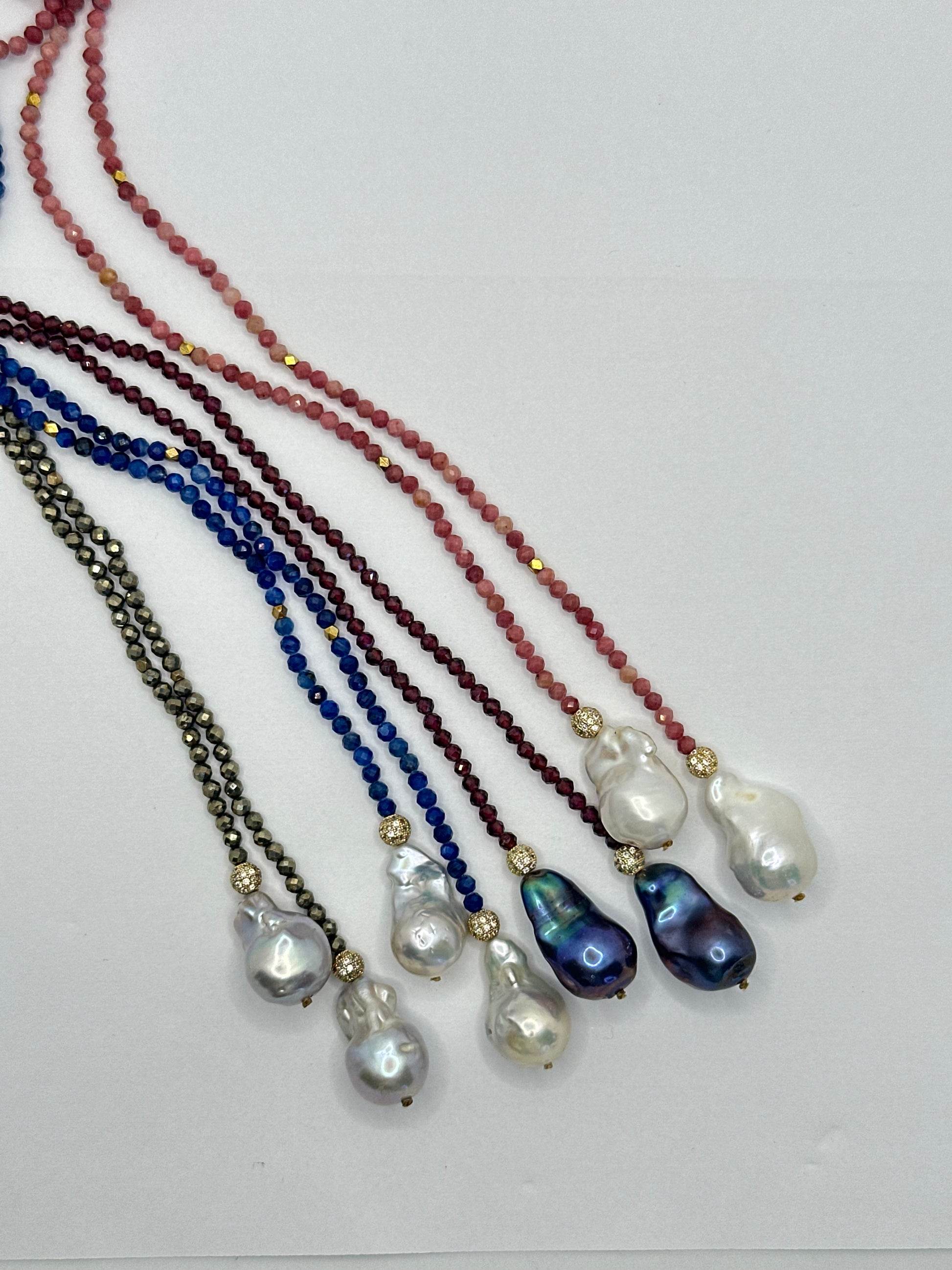 The Stephanie Lariat, the semi-precious sister of Isla, offers sophisticated versatility with five distinct ways to wear. Designed to complement both western-inspired fashion and sheer, elegant styles, this exquisite piece is finished with lustrous CZ beads and unique baroque pearls. Its delicate yet striking design makes Stephanie Lariat a truly special accessory, perfect for elevating any refined wardrobe with understated luxury.